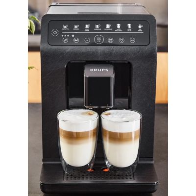 Krups EA897B10 Evidence Eco Design.Potpuno automatski aparat za kafu. 15 postavki za pripremu napitaka.OLED touch-screen kontrolni display.Automatski ciklus ispiranja parne mlaznice.Ekstra veliki spremnik vode i spremnik za zrna kafe.