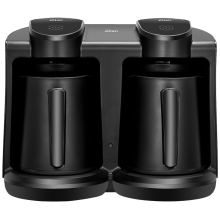 Kuhalo za tursku kavu, dvostruko, priključna snaga 400W + 400W, zapremina posude 250 + 250 ml, priprema do 8 šaljice kave, savršena kontrola temperature, zvučni i svjetlosni alarm, dodirni prekidač On/Off, zaštita od pregrijavanja, zaštita od rada bez vode, grijač od nehrđajućeg čelika, jednostavno za održavanje, kompaktan i moderan dizajn