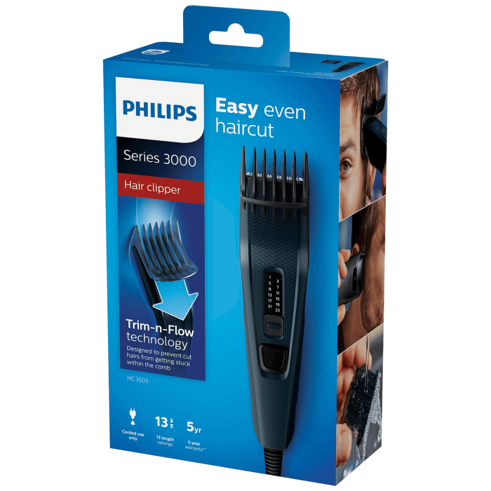 Aparat za šišanje serije 3000 napravljen je da traje i dizajniran za pružanje odličnih radnih značajki. Inovativni element za šišanje, dvostruko naoštren sa smanjenim statičkim elektricitetom, oštrice od nehrđajućeg čelika i prilagodljivi češalj dizajnirani su za brzo i oštro šišanje svaki put. 13 postavki duljine 0,5 - 23 mm, širina rezača 41 mm, ergonomska ručka