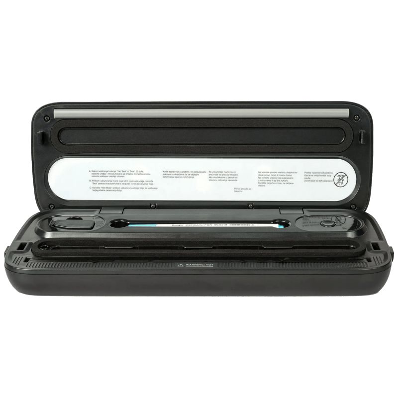 Više funkcija vakumiranja: nježno – normalno, suho – mokro, pulsno. Mogućnost vanjskog vakumiranja vakum posuda. Nož za rezanje folije (dizajniran da je siguran za korištenje). Olovka za obilježavanje namirnica nakon vakumiranja.