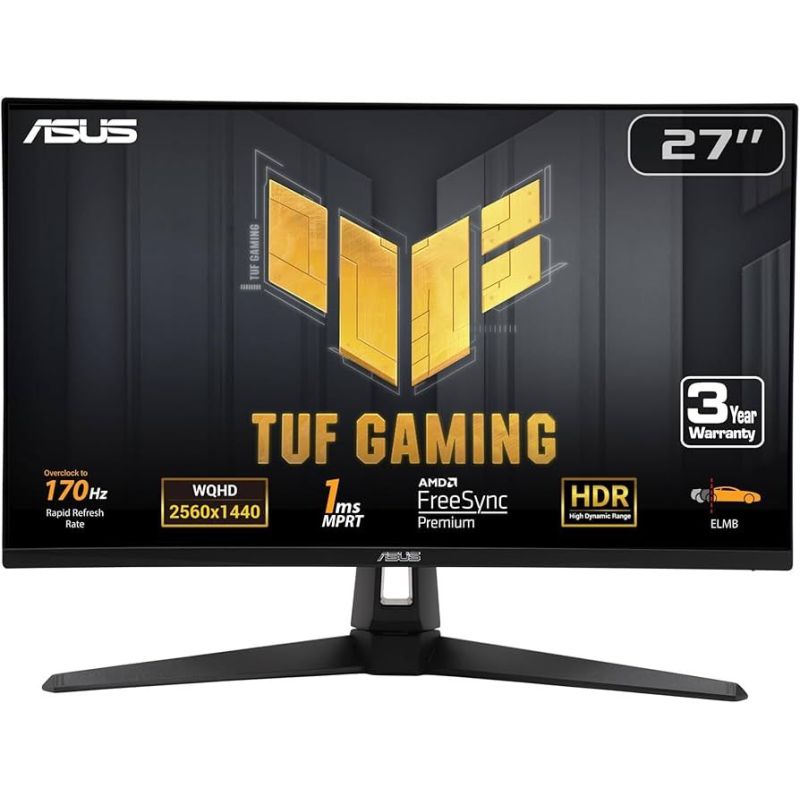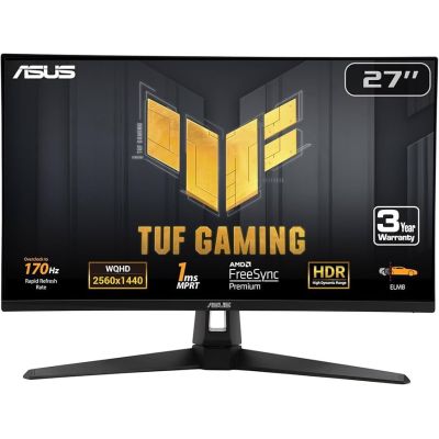 TUF Gaming VG27AQA1A Gaming Monitor – 27 inch WQHD (2560 x 1440), Overclock to 170Hz (above 144Hz), Extreme Low Motion Blur™, Freesync Premium™, 1ms (MPRT), Shadow Boost, HDR, DisplayWidget Lite