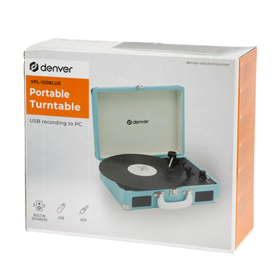 Denver gramofon VPL-120 , USB, zvucnici 2 x 1W, audio out, 331/3rpm, 45rpm or 78rpm, PC recording,plavi