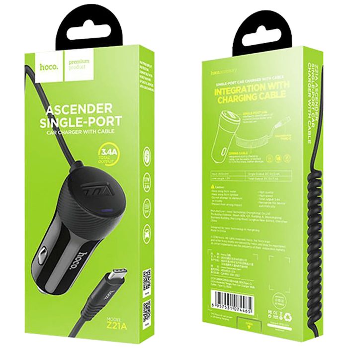 hoco. Auto punjač sa micro USB kabelom, 1 x USB, 2.4 A max. - Z21A Ascender single USB