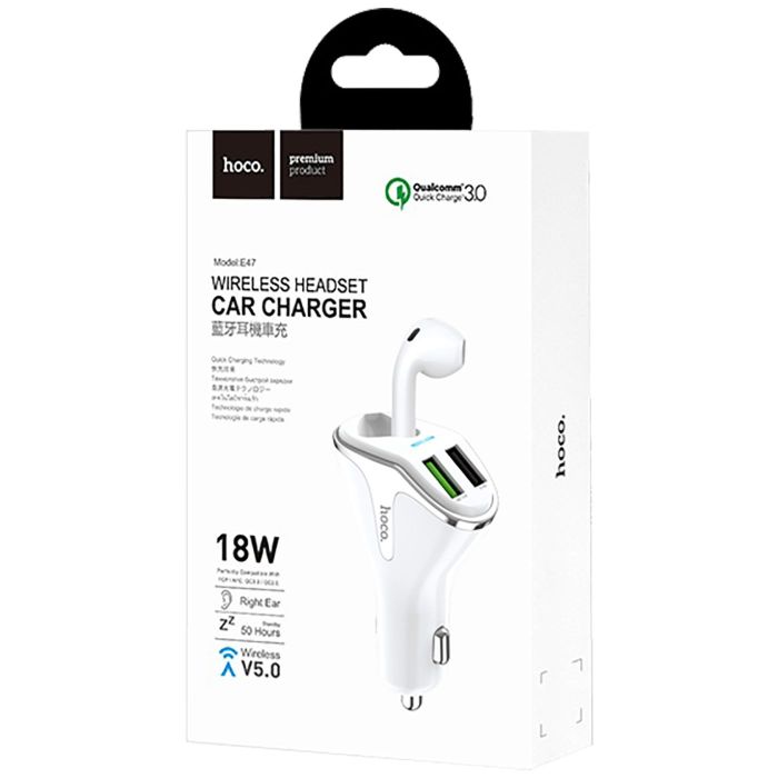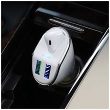 Univerzalni Auto punjač sa bežičnom slušalicom, 2 x USB, 12-24V, 5V / 3.1A / 18 W, brzo punjenje standard QC3.0, bežična slušalica v5.0, 35 mAh, vrijeme punjenja 1.5 h, vrijeme razgovora do 2.5 h, vrijeme na čekanju do 50 h, boja bijela