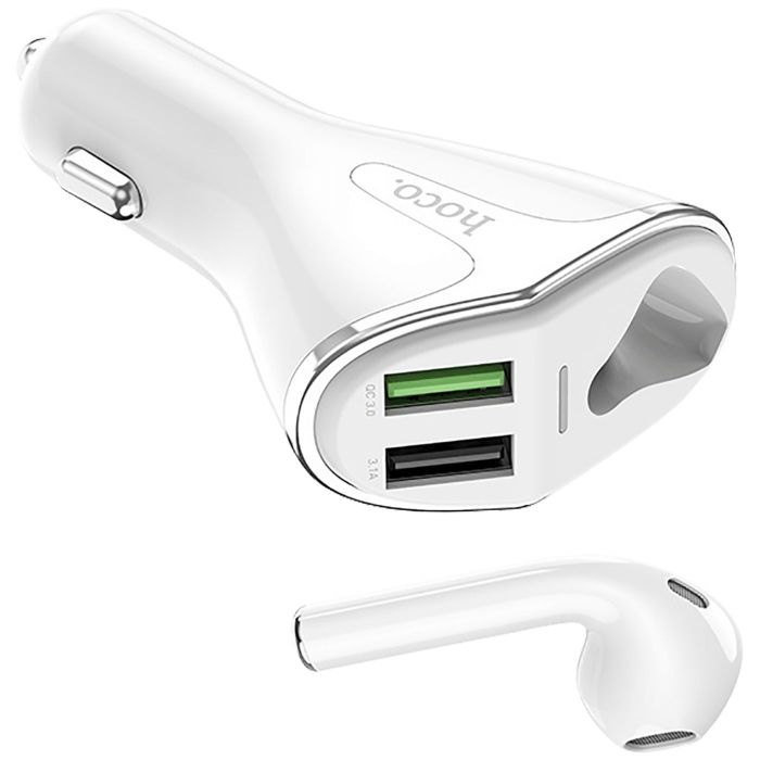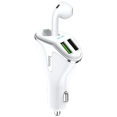 hoco. Auto punjač sa bežičnom slušalicom, QC,2 x USB, 3.1 A,bijela - E47 Traveller White