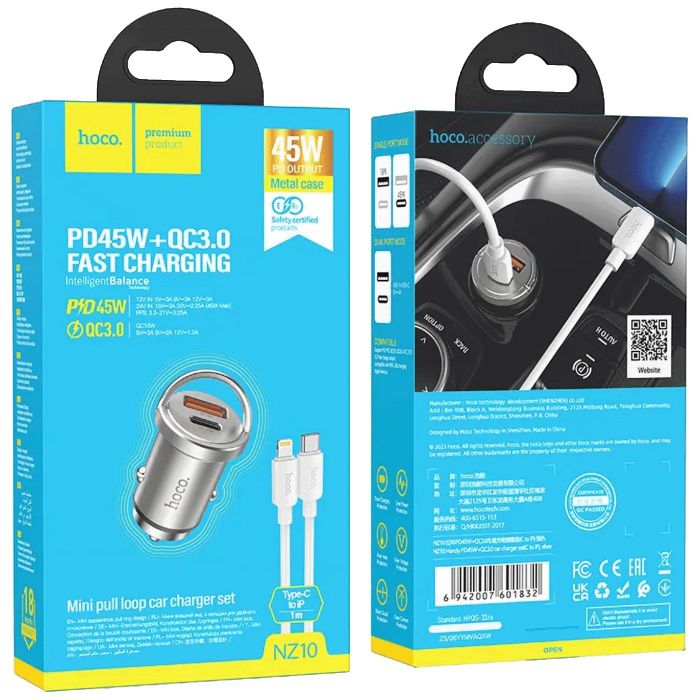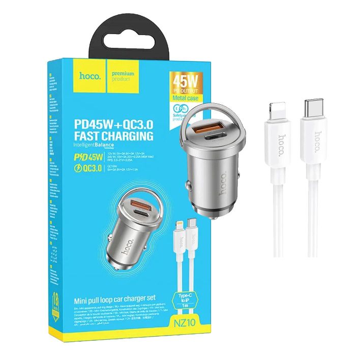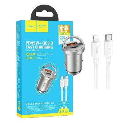 hoco. Auto punjač, brzi, sa Lightning kabelom, PD45W+QC3.0 - NZ10 Handy, Lightning