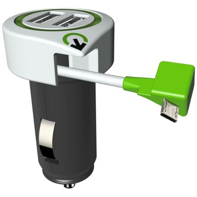 Univerzalni USB Auto punjač, 2 x USB utor, microUSB konektor, dužina kabela 18cm, ulazni napon 12V - 24V, izlazni napon 5V / 3.1A