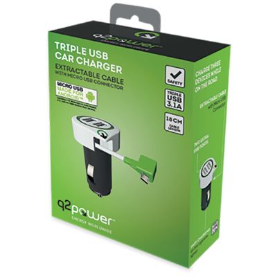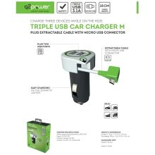 q2power Auto punjač, Dual USB, 3.1A, microUSB - TRIPLE USB CAR CHARGER M