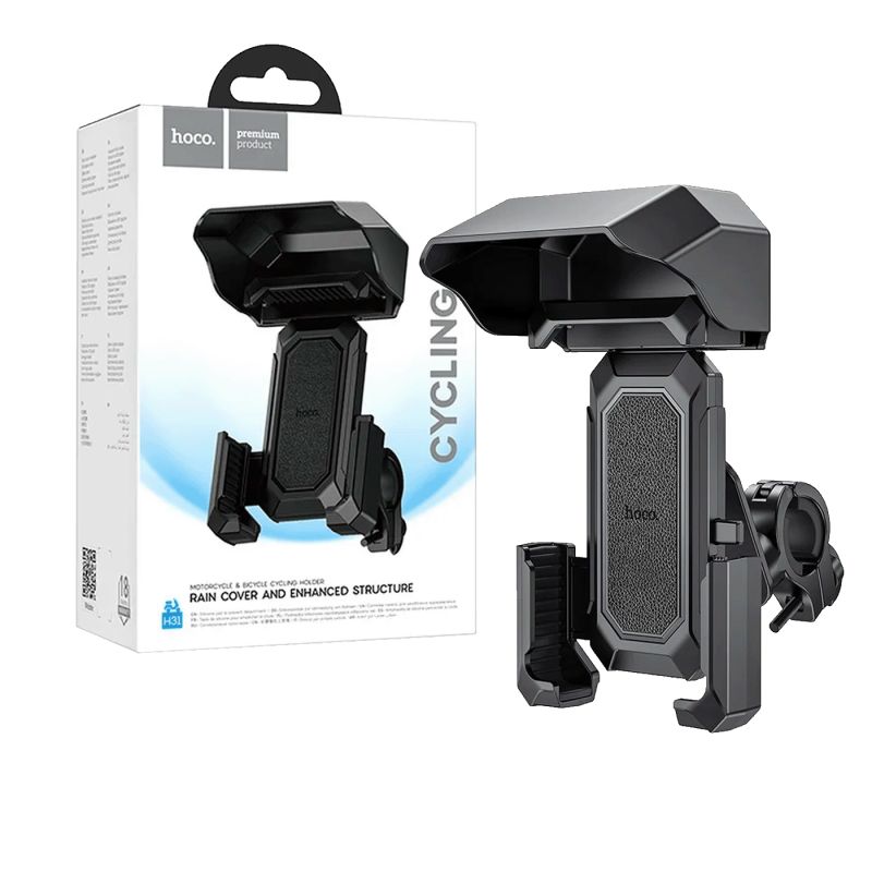 Snažan držač za pametni telefon Hoco H31 montiran na okvir upravljača bicikla, skutera, romobila, motocikla ili kolica. Držač je kompatibilan s pametnim telefonima s dijagonalom ekrana od 4,5 do 7,0".