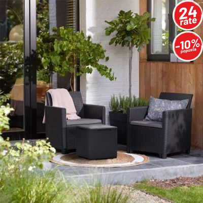 Balkonski set Maria Vigo idealan je izbor za uređenje balkona, manje terase ili dvorišta. Zahvaljujući modernom dizajnu sa teksturom ratana i elegantnoj sivoj (grafit) boji, set se lako uklapa u svaki prostor i pruža ugodan kutak za opuštanje, jutarnju kafu ili večernje druženje na svježem zraku.