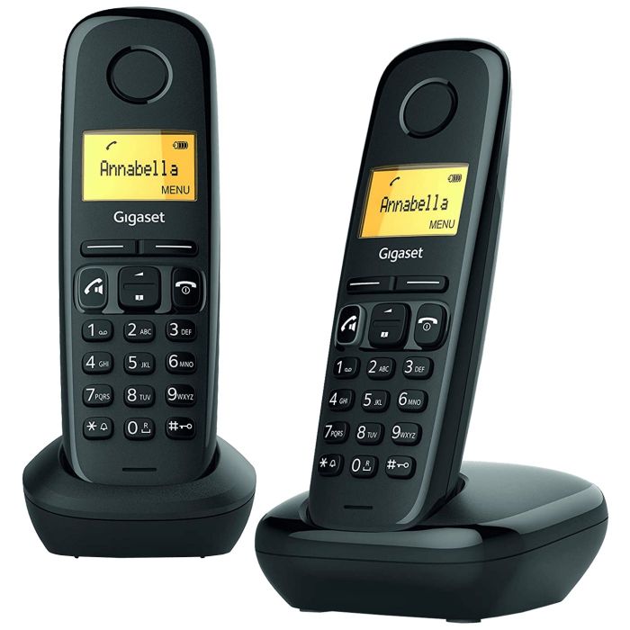 Gigaset A270 DUO, 2 jedinice, bežični DECT analogni telefon, telefonski imenik za 80 imena i brojeva, prikaz broja pozivatelja, lista zadnjih 25 propuštenih poziva, 10 melodija, LCD 1.5" display, pozadinsko osvjetljenje, prikaz vrijeme / datum, alarm...