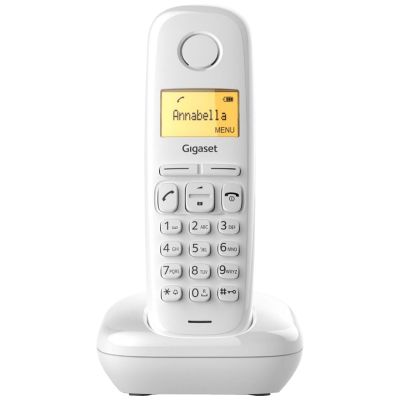 Gigaset A270, bežični DECT analogni telefon, telefonski imenik za 80 imena i brojeva, prikaz broja pozivatelja, lista zadnjih 25 propuštenih poziva, 10 melodija, LCD 1.5" display, pozadinsko osvjetljenje, prikaz vrijeme / datum, alarm... Baterije 2 x NiMh AAA baterije ( 400 mAh ), vrijeme rada do 18 h., stand by do 200 h., doet do 50 met. u zatvorenom prostoru, 300 met., na otvorenom prostoru, dimenzije baze 89 x 43 x 89 mm, dimenzije slušalice 48 x 30 x 159 mm