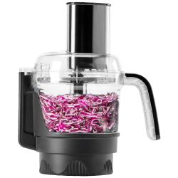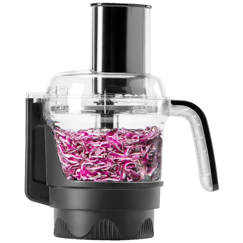 Velika 900 ml Tritan Renew posuda izrađena je od 50% certificiranog recikliranog materijala, izuzetno izdržljiva i savršena za smoothieje i napitke za ponijeti. Procesor hrane omogućava brzo sjeckanje, rezanje i ribanje različitih sastojaka, dok mlinac pretvara kafu, začine i bilje u fino mljevenu aromatičnu smjesu u samo nekoliko sekundi.