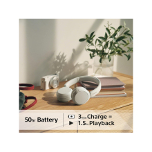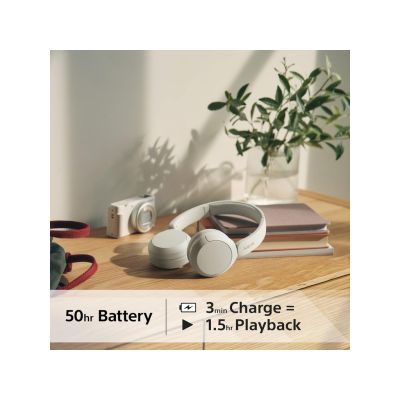Sony bežične slušalice CH520; Digital Sound Enhancement Engine (DSEE); trajanje baterije do 50h; brzo punjenje od 3 min dovoljno za 1,5h reprodukcije; ugradjeni mikrofon; povezivanje istovremeno sa 2 BT uredjaja; boja bijela