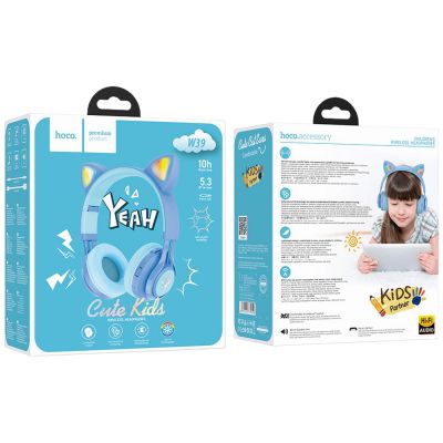 hoco. Slušalice bežične sa mikrofonom, Bluetooth, mačje uši, plava - W39 slušalice Mačje uši,Plave