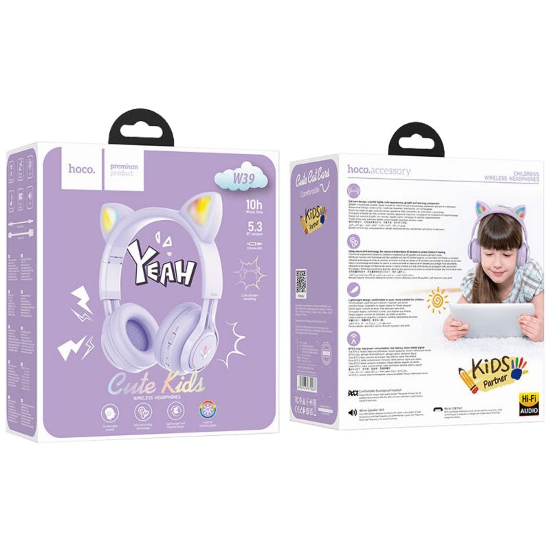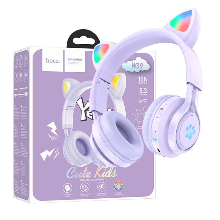 hoco. Slušalice bežične sa mikrofonom, Bluetooth, mačje uši - W39 slušalice Mačje uši,Ljubičaste