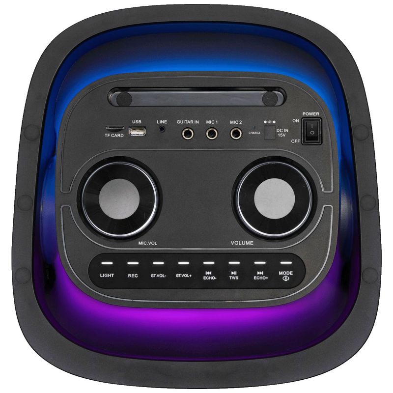 Dvosmjerni zvučni sustav i bas-refleksni dizajn osiguravaju dubok, pun bas i čist, detaljan zvuk. Dvostruki subwoofer čini svaki ritam, što ga čini savršenim izborom za kućne zabave, vrtna okupljanja ili manje događaje.