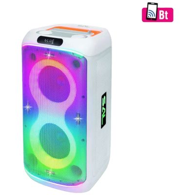 Party zvučnik SAL PAR216WH ne nudi samo snažan zvuk, već i spektakularan svjetlosni show – i to potpuno bežično, u fleksibilnom obliku. Ovaj dvosistemski bass-reflex zvučnik snage 60 W savršen je izbor za svaku prigodu u kojoj su važni kvalitetan zvuk i raznovrsne zabavne funkcije.