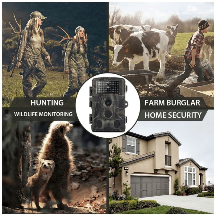 Ova digitalna kamera ( lovačka kamera ) idealan uređaj za nadzor stambenog prostora, nadzor nad skladištima. Svojim specifičnim dizajnom i svojim maskirnim izgledom veliku primjenu ima u praćenju i nadgledanju divljih životinja te je prikladna za postavljanje ili pričvršćivanje u prirodi.