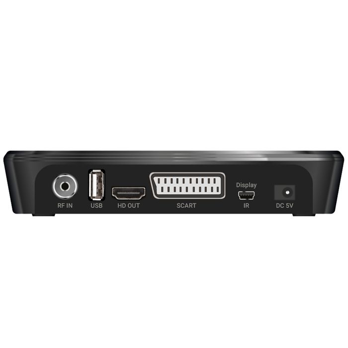 Zemaljski DVB -T2/C prijemnik, chipset GX6702, H.265 / HEVC, flash memorija 64 MB, RAM 1 GD DDR3, prednji LED panel, 4:3 / 16:9 omjer slike, PVR mogućnost snimanja, Media Player ( MKV, AVI, MPEG, TS, VOB, MP3, JPEG Playback ), HDMI, USB, Scart , napajanje 5 V DC / 1A adapter