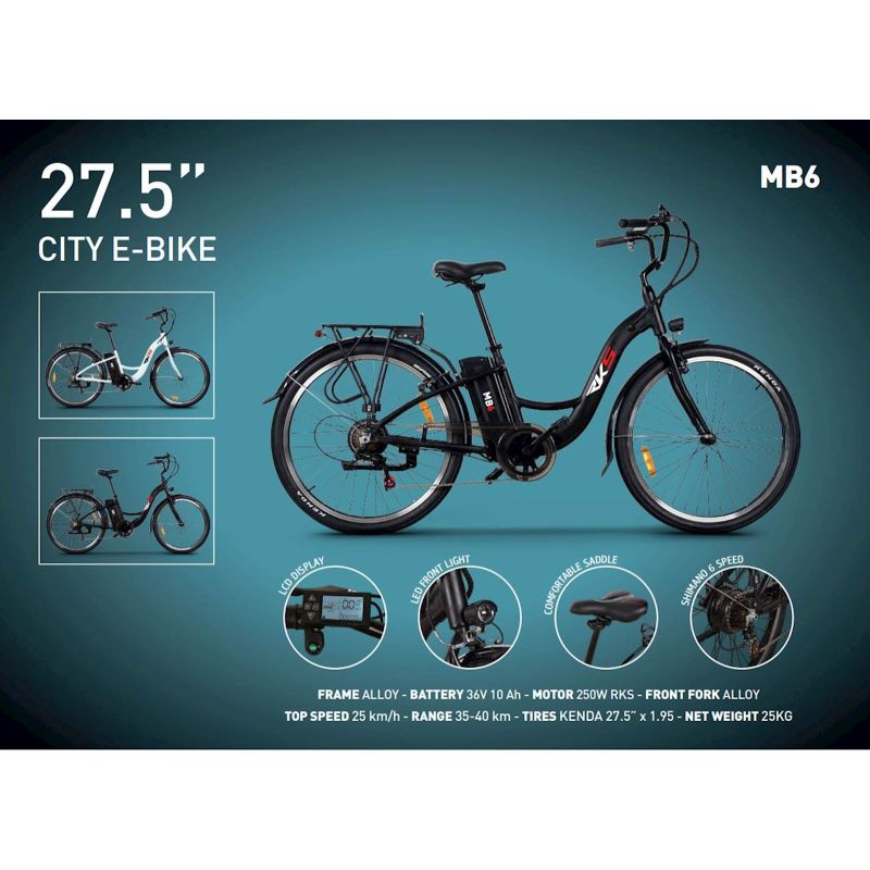 Šarm, elegancija i trajnost, što biste još mogli poželjeti od električnog bicikla? Novi električni bicikl MB6 RKS Motor dizajniran je da pruži ekološki održivo prevozno sredstvo koje omogućava svima (bez obzira na fizičku spremnost) da brzo prevladaju gradske udaljenosti. Električni bicikl MB6 idealno je rješenje za sve one koji traže praktičan i svestran model. Pruža vam zdrav i aktivan životni stil. Privlači svojim modernim i avangardnim dizajnom; oblik kompaktnog i izduženog okvira uključuje elegantne linije klasičnih bicikala. Izuzetno niske visine ulaza omogućava vožnju ljudima svih starosnih grupa. Lakoća i okretnost karakteristike su koje čine MB6 e-bicikl pogodnim za lakše upravljanje svakodnevnim gradskim prometom. Tome doprinosi i 6-stepeni Shimano mjenjač. Sigurnosni standardi e