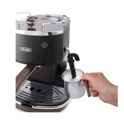 SAŽETAK Odaberite omiljenu mješavinu kafe ili kapsulu i skuhajte bogati, glatki espresso sa savršenom pjenom Pripremite širok raspon mlijecnih napitaka zahvaljujuci rucnom Cappuccino sistemu Unesite dašak ekskluzivne elegancije u svoju kuhinju uz elegantan dizajn Icona Vintage u zagasito crnoj boji GLAVNE ZNACAJKE Dizajn Icona Vintage Istinski klasik talijanskog dizajna, Icona Vintage ima sofisticiranu završnu obradu visokog sjaja s elegantnim, retro kromiranim detaljima. pritisak od 15 bara Znacajka pritiska od 15 bara omogucuje pripremu ukusnog espressa bogate arome i primamljive kremaste pjene boje oraha. Rucni Sustav za cappuccino Uz klasicnu pjenjacu za mlijeko možete rucno miješati paru i mlijeko kako biste postigli savršenu gustocu pjene za omiljene mlijecne napitke. Mljevena kafa i