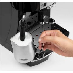 De Longhi ECAM 22.112.B Magnifica S je kompaktni aparat za kafu u kojem samo pritisnete dugme i okrenete tipku za odabir kako biste kafu prilagodili svojim željama. Dostupan je sistav za cappuccino, gdje miješanjem pare, zraka i mlijeka stvara bogatu, kremastu pjenu za vrhunske napitke od kafe. Birajte između kratke, srednje ili duge kafe, jake ili vrlo nježne arome, vruće tople ili manje tople. U samo jednom postupku možete napraviti dvije šalice kafe. Vrlo tih ugrađeni mlin za kafu s 13 podesivih postavki vam omogućuje mljevenje zrna kafe do tačno prave debljine. Uređaj se može koristiti s zrnima kafe ili mljevenom kafom.