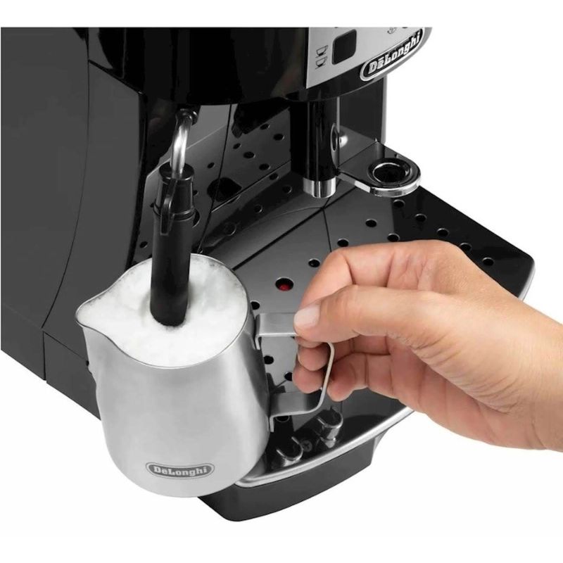 SAŽETAK DeLonghi Magnifica je aparat za kafu koji vam pruža prednosti mašine za pripremu kafe u zrnu i slobodu da sami kreirate kafu. Skuhajte kafu po Vašoj želji i dopunite je predivnom mlijecnom pjenom iz rucnog pjenilaca mlijeka. - Rucni pjenilac mleka - Prilagodavanje svoje kafu - Integrisani, tihi mlin za kafu