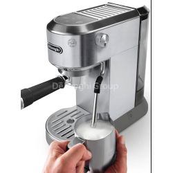 Ručni aparat za kavu Dedica Arte unosi dodatnu eleganciju u jedinstveni i prepoznatljiv dizajn Dedica. Kompaktan i istodobno snažan, ovaj aparat za kavu savršen je dodatak vašoj kuhinjskoj radnoj površini, jamči laku pripremu ukusne jutarnje kave, mikropjenu svilenkaste teksture za vaše omiljene mliječne napitke te vrhunsku jednostavnost i praktičnost. SAŽETAK Visoke performanse u pametnoj veličini, uz širinu od samo 15 cm i sustav zagrijavanja pod tlakom od 15 bara Košarice s filtrom velikog kapaciteta za ukusniji i intenzivniji espresso Parna pjenilica My LatteArt: Ručno teksturira mlijeko za savršenu mikropjenu i autentičan barista doživljaj Uklonite podlošku za kapanje kako biste dobili dodatni prostor za šalicu Elegantan, kompaktan aparat od nehrđajućeg čelika sa sjajnom sivom završno