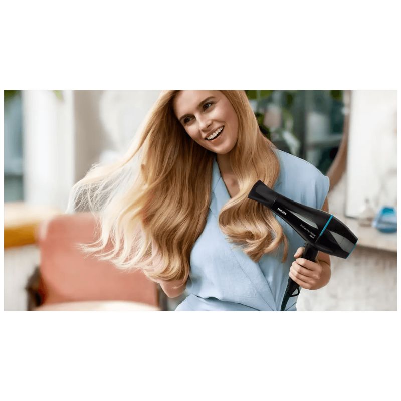 Fen za kosu Philips Pro ima profesionalni AC motor koji doseže brzinu protoka zraka do 130 km/h kako bi se postigli brzi i profesionalni rezultati. Ima i postavku ThermoProtect za optimalnu temperaturu koja štiti od pregrijavanja.