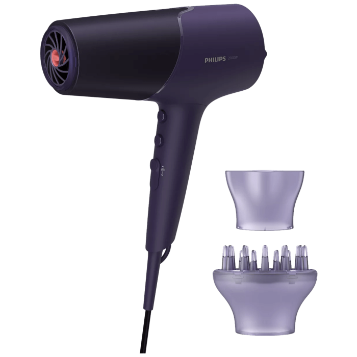 Snaga 2300W, 6 postavki topline / brzine, mlaz hladnog zraka, trakica za spremanje, usisna četka 11 mm, nastavak za volumen, dužina napojnog kabela 1.8 met.