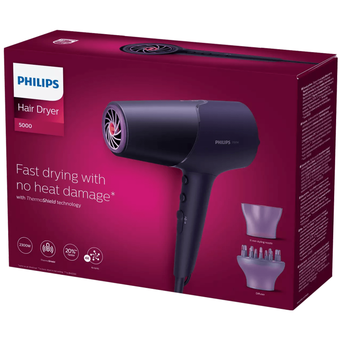 Senzor za otkrivanje pregrijavanja aktivno optimizira i kontrolira temperaturu zraka, štiteći kosu od oštećenja uzrokovanih pregrijavanjem. Uživajte u doživljaju sušenja bez stresa zahvaljujući tehnologiji ThermoShield.
