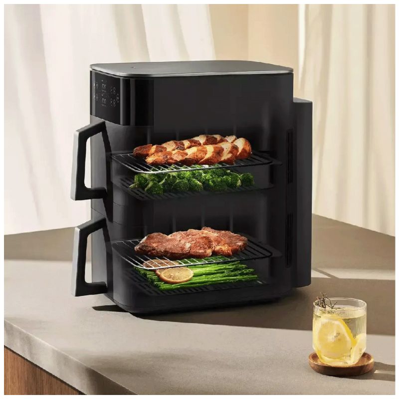 Uštedite na kuhinjskom prostoru uz Xiaomi Smart Double Stack Air Fryer 12 L, fritezu koja nudi inovativan dizajn s dvostrukim košarama, čime štedite horizontalni prostor na radnoj površini. S ukupnim kapacitetom od 12 L, koji se raspoređuje na gornju i donju ladicu, ova friteza omogućuje pripremu obiteljskih obroka brzo i učinkovito. Osim što štedi prostor, dizajn omogućuje pripremu više jela odjednom, čime možete istovremeno pripremiti glavno jelo i priloge, zadržavajući sočnost hrane.