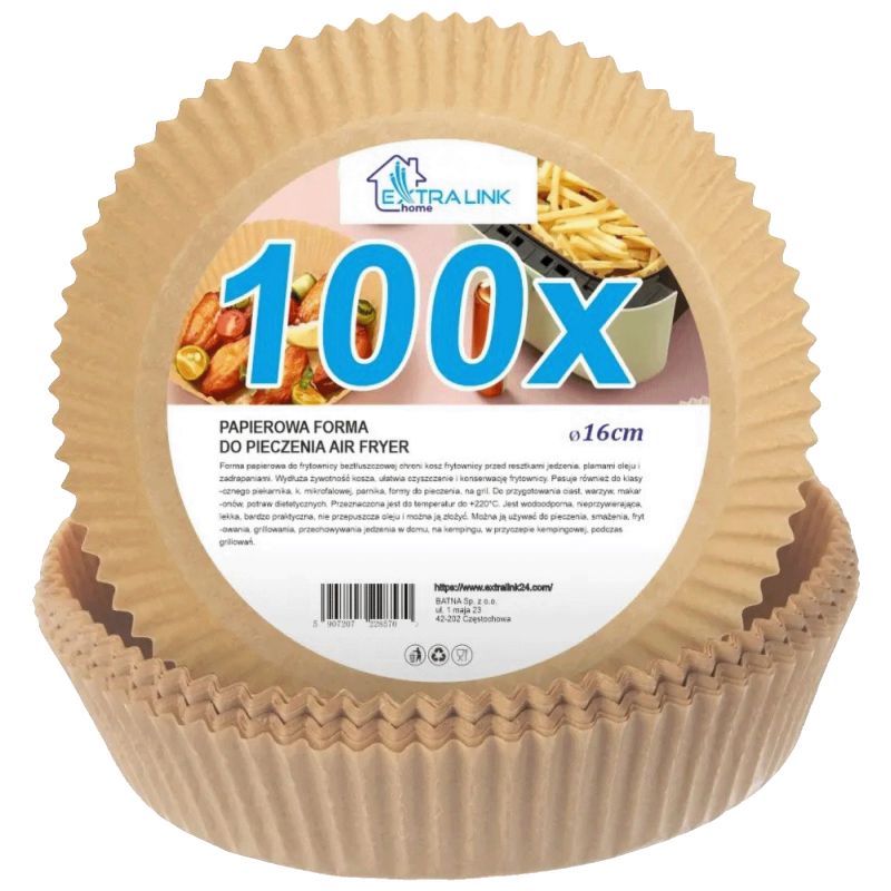 Extralink Papir za pečenje za friteze na vrući zrak,16x16 cm,100 kom. - Paper Liners for Air Fryers 100pcs