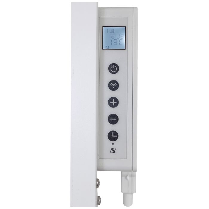 Tjedni timer, elelektronički termostat, detekvija otvorenog prozora, LCD zaslon. Dužina napojnog kabela 1.6 met., napajanje 230 V ~ / 50 Hz, dimenzije 1200 x 500 x 55 mm, IP20