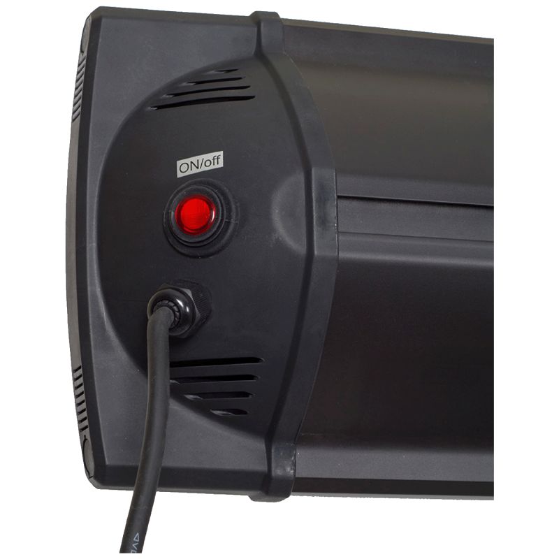 Grijalica sa karbonskim grijačem, snaga 2000 W, kontrola preko daljinskog upravljača, 4 postavke napajanja, timer za isključenje 1 - 9 sati, dužina napojnog kabla 1,8 met, zaštita od pregrijavanja, montaža na zid ili strop. Preporučena površina grijanja 16 - 32 m². IP55 standard, unutarnja i vanjska uporaba