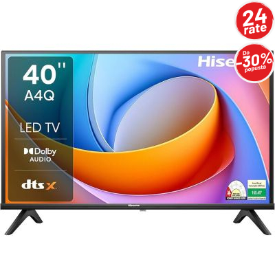 Hisense LED 40A4Q je 40-inčni Full HD Smart LED televizor koji nudi jasnu i prirodnu sliku rezolucije 1920×1080 px, idealnu za svakodnevno gledanje TV programa, filmova i serija. Zahvaljujući kvalitetnom Direct LED panelu, slika je ujednačena i ugodna za gledanje u svim uslovima osvjetljenja.