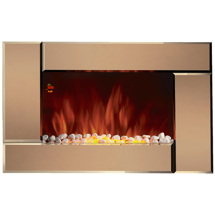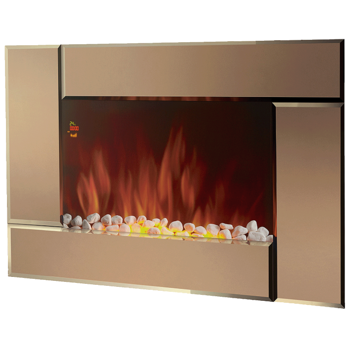 Zrcalna prednja ploča trendovski je naglasak koji izgleda luksuzno u svakom interijeru, a zahvaljujući ukrasnom gorivu - "kamenju" - postiže se maksimalna razina udobnosti. Dvije razine toplinske snage stvorit će za vas optimalnu klimu.