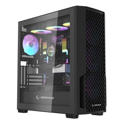 Kućište gaming RAMPAGE SHELOB Mesh, Tempered Glass, 4*ARGB Infinity Fan, Hub, E-ATX, Mid-T, 39991