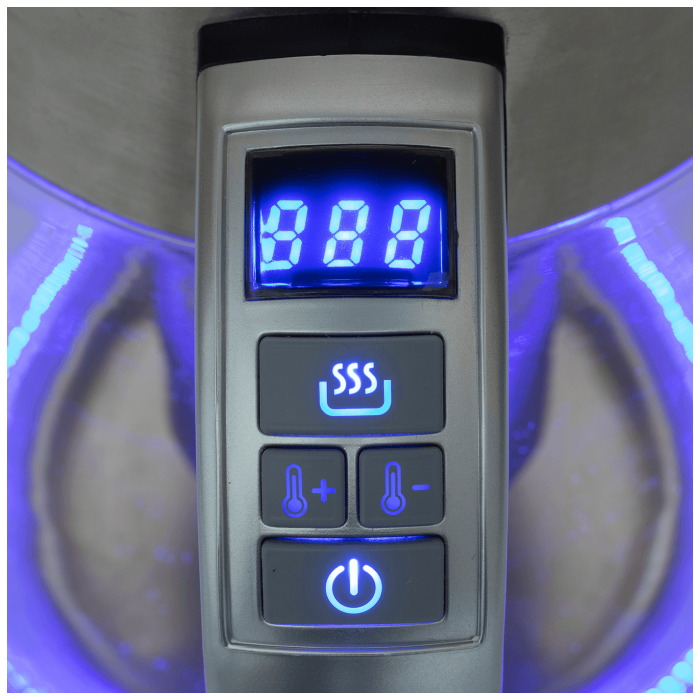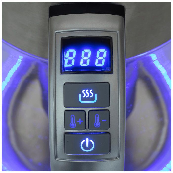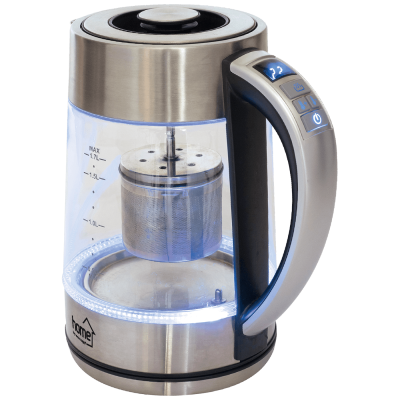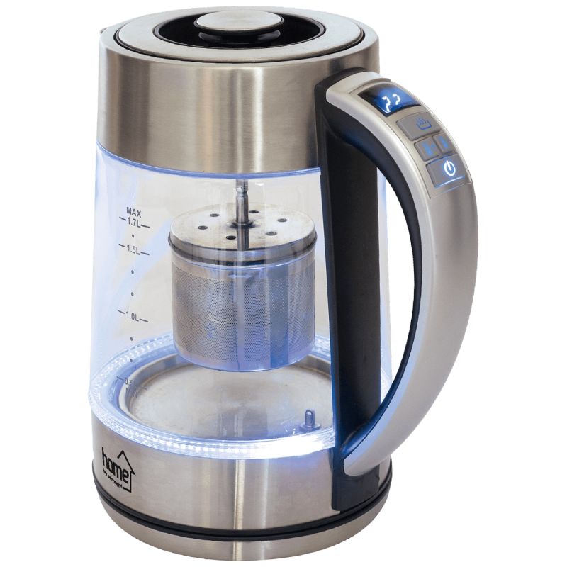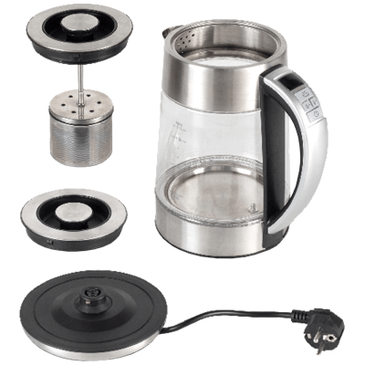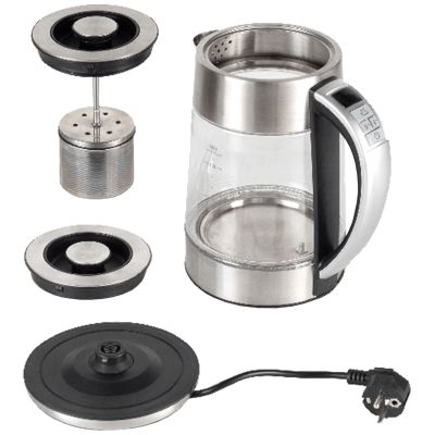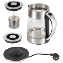 Električno kuhalo za čaj s termostatom, snaga 1850 - 2200 W, spremnik za vodu 1,7 litara, kućište staklo i nehrđajući čelik, elektronski termostat, podesiva temperatura 40-100 °C, - funkcija održavanje topline, ukrasno LED svjetlo,