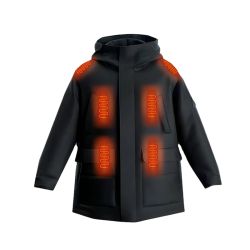 Ravnomjerno zagrijavanje se vrši pomoću revolucionarnog materijala - sloja ugljikovih nanocijevi, koji je siguran za korištenje, učinkovit i također vrlo stabilan grijaći element, a da se uopće ne osjeća kada se nosi. Sistem grijanja napaja vanjska prijenosna baterija (PowerBank) od 10.000 ili 20.000 mAh (nije uključena u paket i mora se kupiti posebno), koja se potom nalazi u posebnom džepu zaštićenom od kiše i snijega. Unutar električnog sistema vrši se 4-stepensko podešavanje temperature (38, 43, 48 i 53 stupnja celzijusa), a u tu svrhu jakna je opremljena i ručnim regulatorom temperature u desnom džepu tako da možete udobno podesiti na željenu temperaturu.