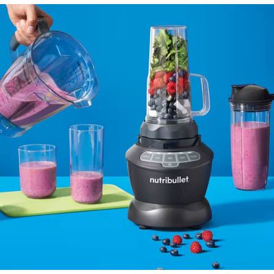 Velik i jednostavan za cišcenje, eklektican i visokih performansi, osnovnog dizajna i baze s motorom snage 1200 W. nutribullet® Full Size Blender Combo pruža maksimalnu preciznost i izvrsnu kontrolu: možete blendati pri razlicitim brzinama, ekstrahirati hranjive tvari i osloniti se na otpornost na toplinu kako bi pripremili beskrajni raspon recepata. Osim toga, izbor dodataka vaše ce iskustvo nutribulleta® odvesti na drugu razinu. Ukljucuje: nutribullet® Full Size Blender Combo - Baza s motorom snage 1200 W - Ekstrakcijska oštrica Easy-Twist - Vrc zapremnine 1800 ml - Vrc s otvorom na poklopcu i poklopcem za otvor - Potiskivac ukljucena 4 dodatka - Putna caša s ruckom od 700 ml - Velika caša od 900 ml - Flip top poklopci za caše (2)
