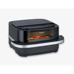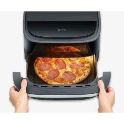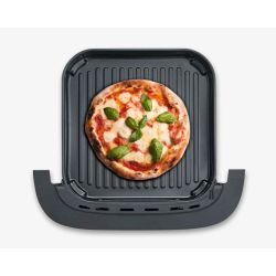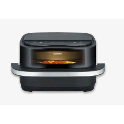 SEVERIN „S-Fry Pizza & More“ impresionira tehnologijom vruceg zraka za brzu, bezmasnu i energetski štedljivu pripremu. Optimalno oblikovana, široka komora za kuhanje nudi prostor za pripremu cijele pizze – zahvaljujuci posebnim postavkama za svježu i smrznutu pizzu, hrskava je izvana, a socna iznutra. I druga jela poput pomfrita, muffina ili pilecih krilaca mogu se pripremiti hrskavo. Ukupno deset unaprijed postavljenih programa omogucuje preciznu pripremu širokog spektra jela. Fleksibilna postavka temperature od 40 – 230 °C omogucuje snažno gornje i donje grijanje s približno 2100 W i osigurava ravnomjernu raspodjelu topline, dok prakticni prozorcic za gledanje omogucuje vam da u svakom trenutku vidite proces kuhanja. Pravi svestrani uredaj za ljubitelje pizze.