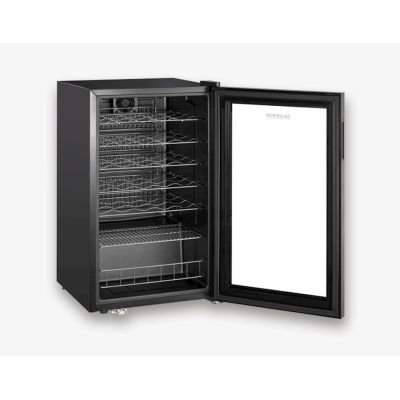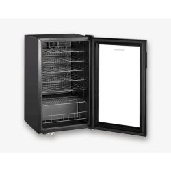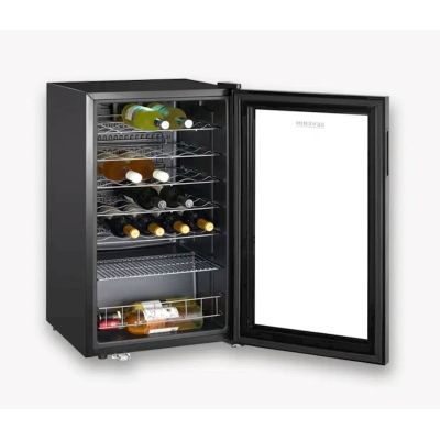 * Kontinuirano podesiva temperatura od 5°C do 18°C ????putem zaslona osjetljivog na dodir za optimalno skladištenje do 33 boce od 0,75 litara * Preklopna LED unutarnja rasvjeta za ugodnu atmosferu * Ugodno tiho * Visokokvalitetni dizajn sa staklenim vratima i plasticnim okvirom te 6 kromiranih polica, od kojih je 5 podesivo po visini