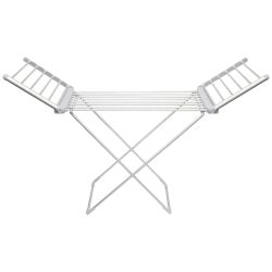 Izrađen od izdržljivog aluminija, ovaj sušač se sklopi lako za jednostavno čuvanje. Nudi konstantnu temperaturu od 50 °C koja osigurava nježno, ali efikasno sušenje. Zahvaljujući IPX2 zaštiti i vodootpornom prekidaču, pogodan je za korištenje u vlažnim uvjetima. S 8 dugih i 2 x 5 kratkih grijaćih šipki, pruža dovoljno mjesta za različite vrste odjeće. Veliki prostor od 147 x 91 x 54,5 cm u radnom položaju pruža praktičan raspored, dok sklopljen zauzima minimum prostora (104 x 54,5 x 5,5 cm).