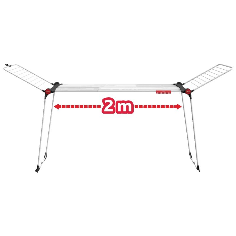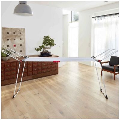 Vileda Infinity Flex sušilica za veš dizajnirana je za sušenje velike količine veša zahvaljujući fleksibilnom i proširivom dizajnu. Centralni dio sušilice može se produžiti, čime se dobija dodatni prostor za sušenje dužih komada veša poput posteljine, stolnjaka ili čaršafa. Stabilna konstrukcija osigurava sigurnu upotrebu, dok robusne žice omogućavaju ravnomjerno sušenje bez ostavljanja tragova na tkanini.
