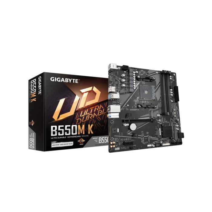 Gigabyte MB [B550M K]; AM4; 4xDDR4 up to 128GB/4733MHz; 2xM.2; 4xSATA; 8xusB; DP; HDMI; PS2; mATX