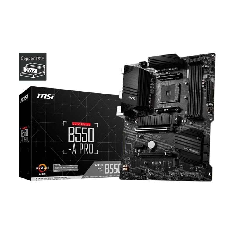 MSI Main Board Desktop B550-A PRO (AM4, 4xDDR4, 1xPCI-Ex16, 2xPCI-Ex1, USB3.2, 6xSATA III,2xM.2, DP, HDMI)