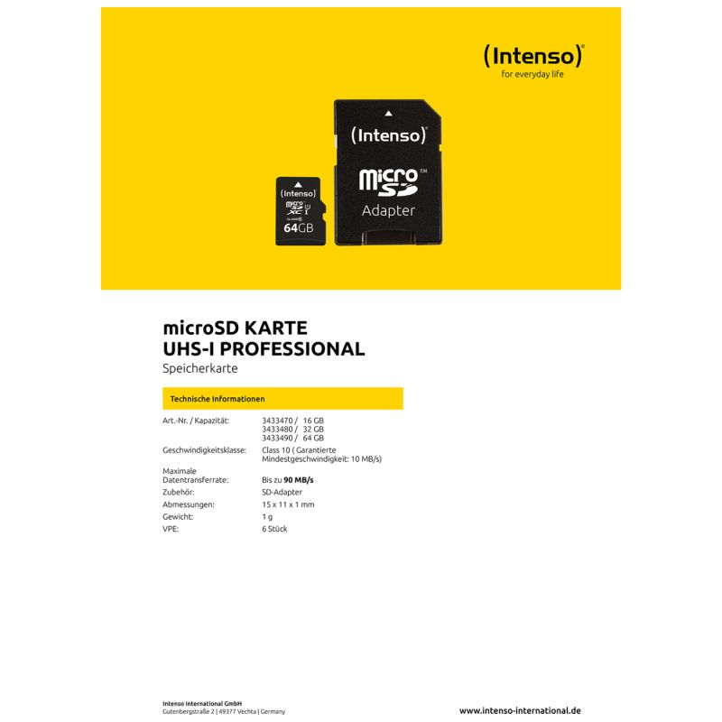 (Intenso) Micro SDHC/SDXC kartica 64GB Class 10, UHS-I +adapter, Pro - MicroSD 64GB Class10 UHS-I Pro