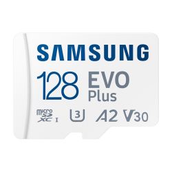 Micro SD card Samsung 128GB EVO Plus MB-MC128SA/EU Read : up to 160MB/s Write Micro SD card Samsung 64GB EVO Plus MB-MC64SA/EU Read : up to 160MB/s Write : Lower than Read Speed* Read/Write speed requires compatible devices capable of reaching such speeds and it may vary among different host devices and testing conditions. * For products incompatible with UHS-I interface, the speeds may vary subject to different interface conditions U1, V10, A1